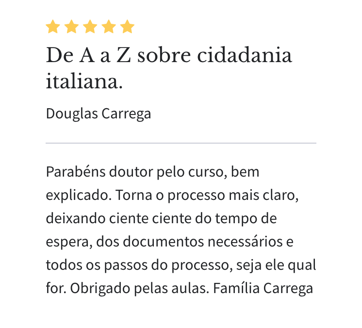 When you buy the +SCARPELLI e-learning course, you automatically get a legal consultation with Avv. Luiz Scarpelli to start making your and your family's dream come true, 100% in accordance to the law.