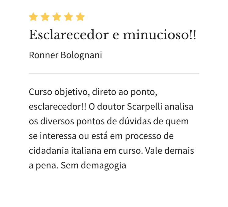 Contact Avv. Luiz Scarpelli NOWFounder of Studio Legale Avv. Luiz Scarpelli, creator of the +SCARPELLI e-learning course, creator and ambassador of the #correntedobem in Italian citizenship, with more than 5,000 clients and 15,000 followers, has already fulfilled the dream and guided thousands of people for free. Come and join our community #correntedobem and make your dream come true, with one of the world's leading experts in Italian citizenship.